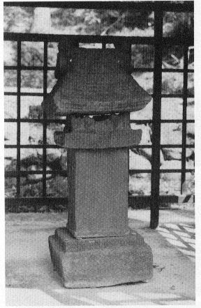 法隆寺の玉虫の厨子に似た形の貴重な中世の石祠(せきし)です。 高さは117.5㎝、屋根、龕(厨子)、竿、基礎の4部からなっています。屋根は入母屋造りで大棟の左右に鴟尾(しび)も付けられています。龕は上半分が欠損していますが、正面左右には狛犬のような像が見えます。中台正面には勾欄と階段が表されています。竿石には正面に鶴・ 亀と松らしい図が見え、他の3面には木の幹の浮き彫りと、開花・青葉・結実の絵があり ます。