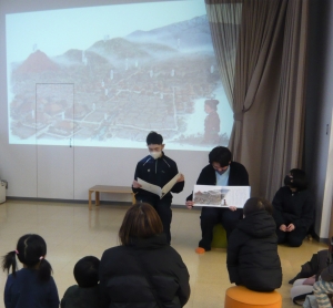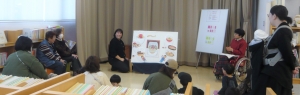 ●「おはなし子ども会・おはなし会」があります。図書館職員による「おはなし会」には、“クロちゃん”が登場するよ!